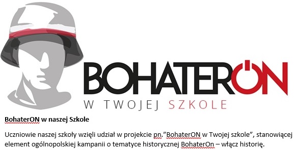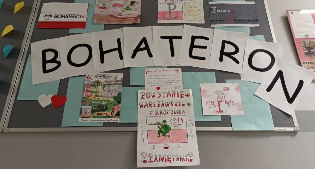Uczniowie z klas IV – VIII wzięli udział w akcji BohaterON w Twojej Szkole 2023! BohaterOn to działania na rzecz uhonorowania i pielęgnowania pamięci o Powstańcach Warszawskich. W ramach prowadzonych działań nasi uczniowie na lekcjach historii poznali różne historie bohaterów powstania warszawskiego: