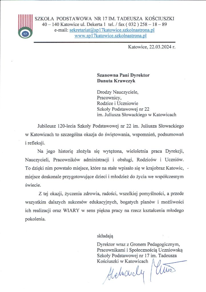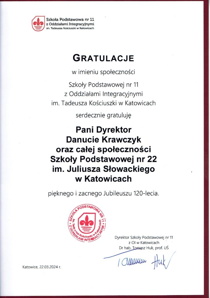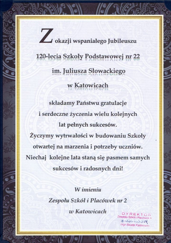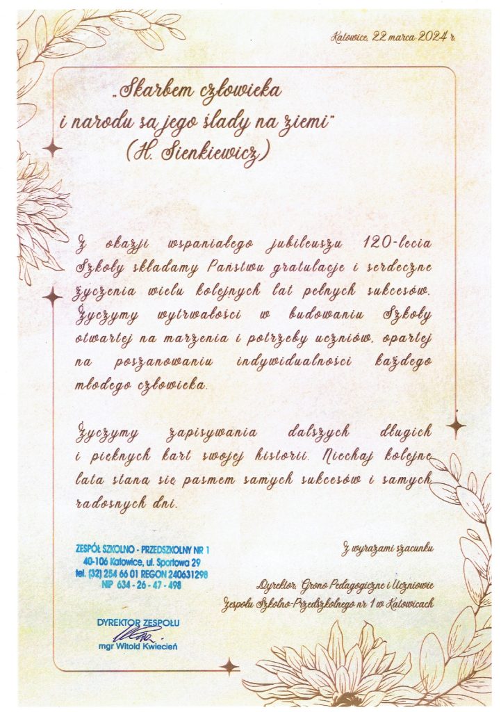 Chcieliśmy podziękować wszystkim, którzy w jakikolwiek sposób przyczyni się do sukcesu naszego święta, jakim był jubileusz 120-lecia istnienia naszej szkoły. Dziękujemy również naszym gościom za liczne przybycie oraz spływające do nas listy gratulacyjne i prezenty. Jesteśmy Wam bardzo wdzięczni.