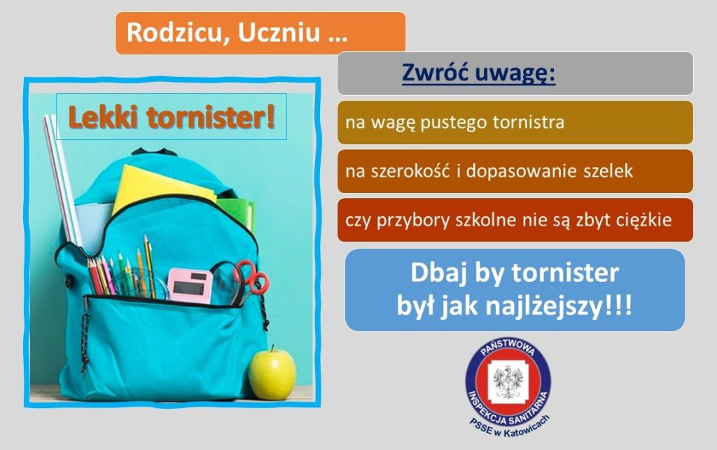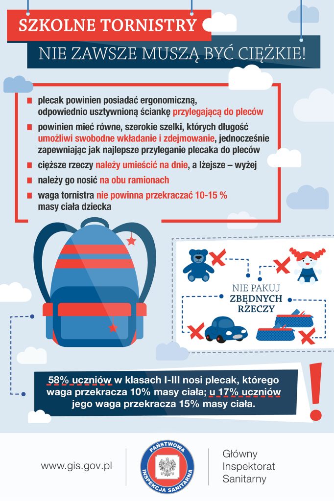 Okres wakacji to dla wielu rodziców czas zakupu wyprawki szkolnej dla swoich pociech. Dlatego, dbając zdrowie i bezpieczeństwo dzieci, szczególnie uczęszczających do klas I-III szkół podstawowych, chcemy zwrócić uwagę na dobór odpowiedniego plecaka oraz przyborów szkolnych.
