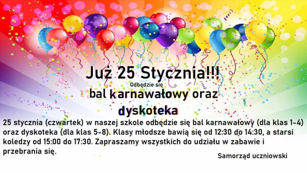 Ferie zakończymy tanecznie! Na lodowisku Murcki odbędzie się niezapomniana dyskoteka na lodzie. Podczas imprezy zorganizowany zostanie konkurs na najbardziej oryginalne przebranie karnawałowe, dzięki czemu impreza nabierze większego charakteru.