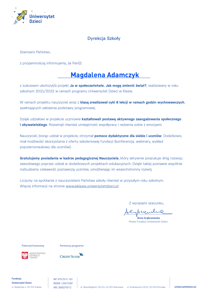 Zainteresowanych prosimy o kontakt z pracownikiem szkoły – sekretarz Małgorzatą Sobczyk tel. 32 2542 003 lub sekretariat@sp22.katowice.pl w godz. 9.00 do 13.00 do dnia 31.07.2022 r.