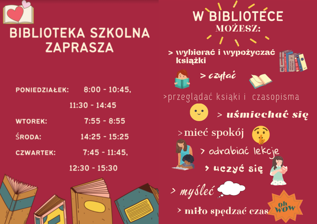 Nasza biblioteka ma nowe godziny pracy. Zapraszamy.