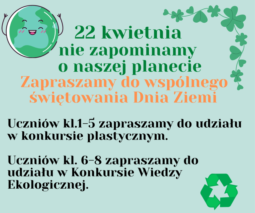- Konkurs na plakat XXVIII „Tygodnia Ziemi” – klasy VII -VIII