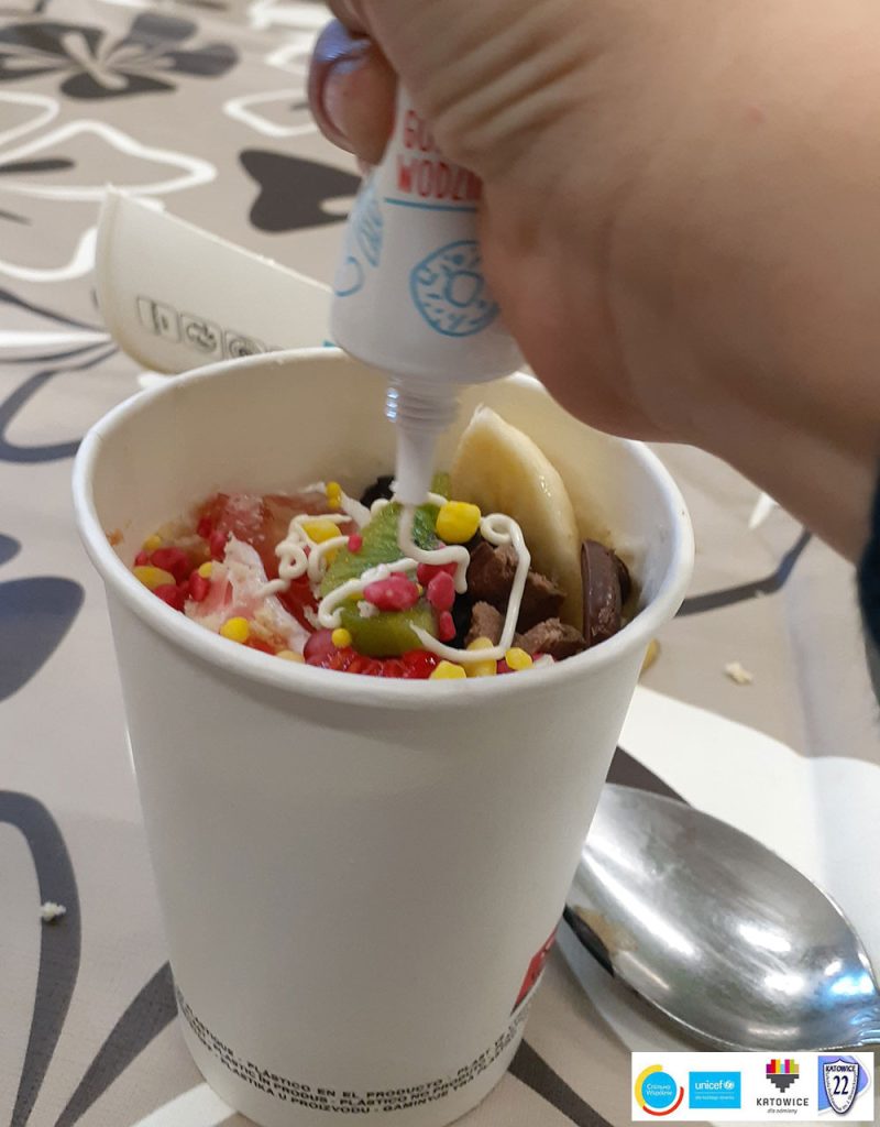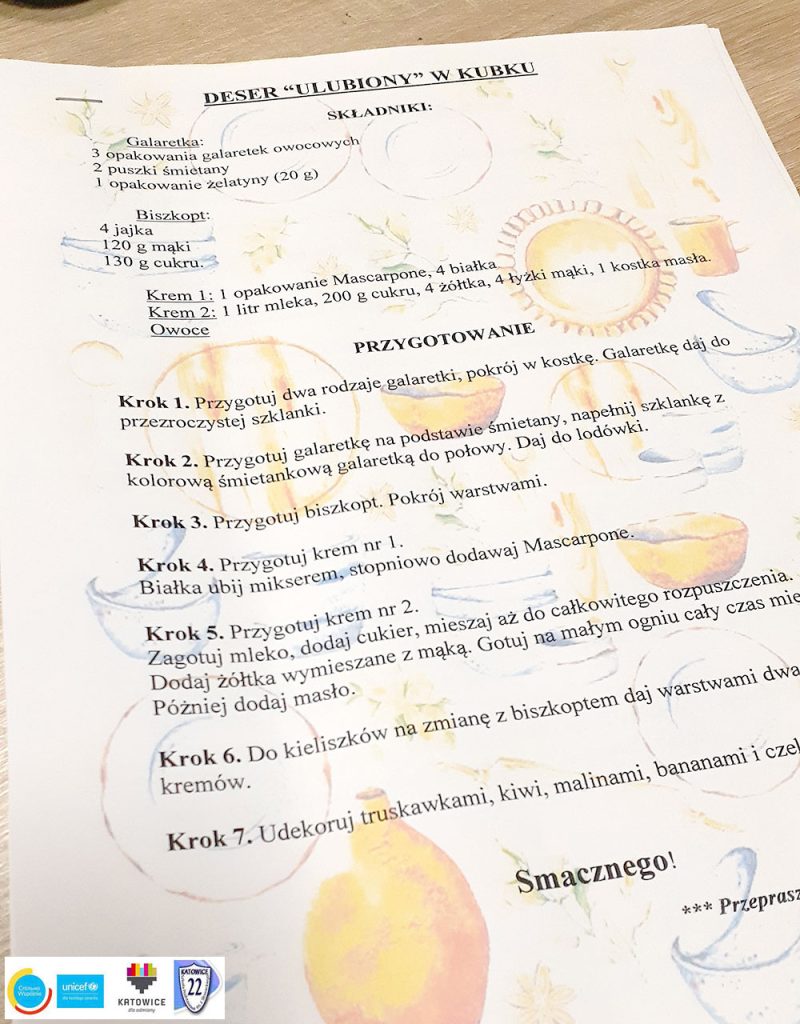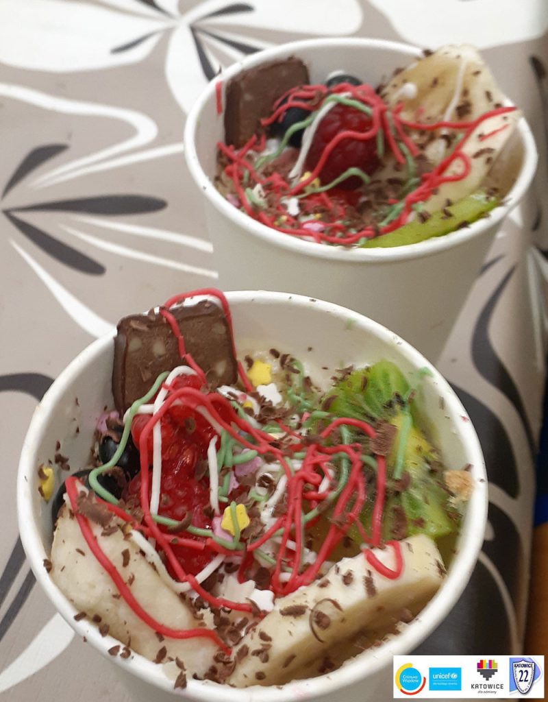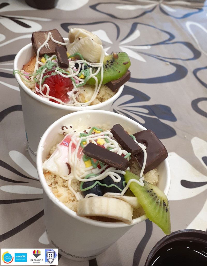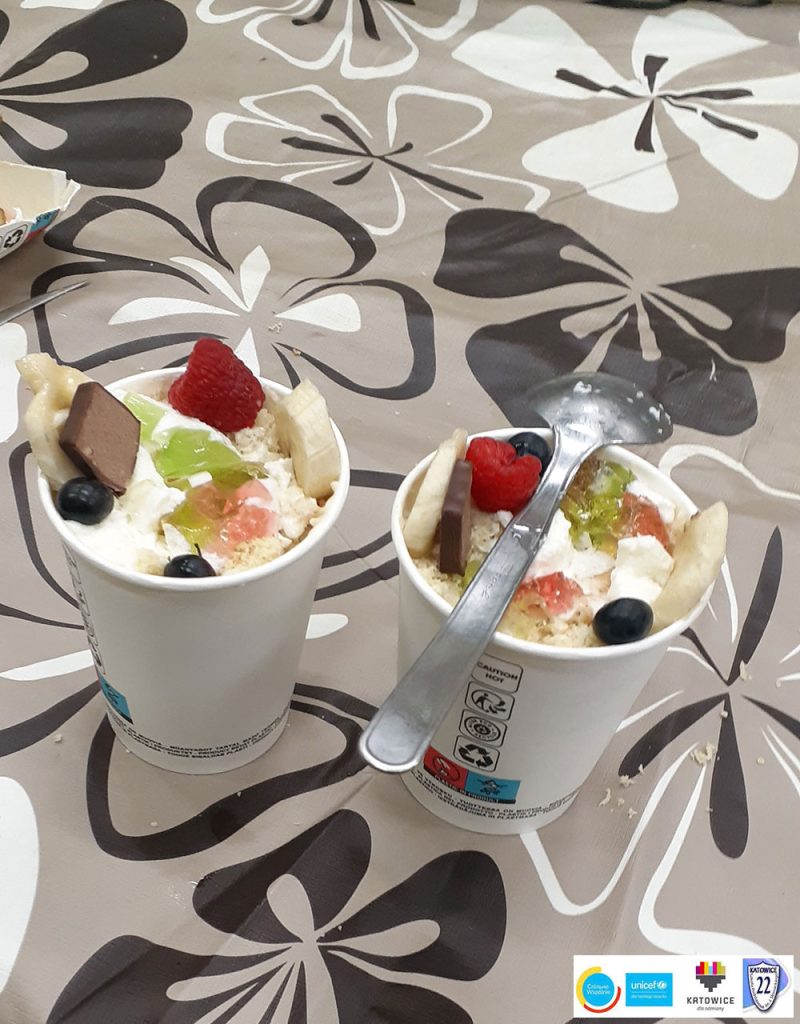 Ulubione domowe desery to najlepsza uczta dla dzieci! W szkole odbyły się warsztaty przygotowania deseru w kubku o nazwie „Ulubiony”. Pachnący krem maślany, krem z serka mascarpone i bitej śmietany, galaretka, mięciutki domowy biszkopt, a do tego zdrowe owoce. Niesamowita ozdoba i dobry nastrój – to wszystko składowe naprawdę udanego dnia!