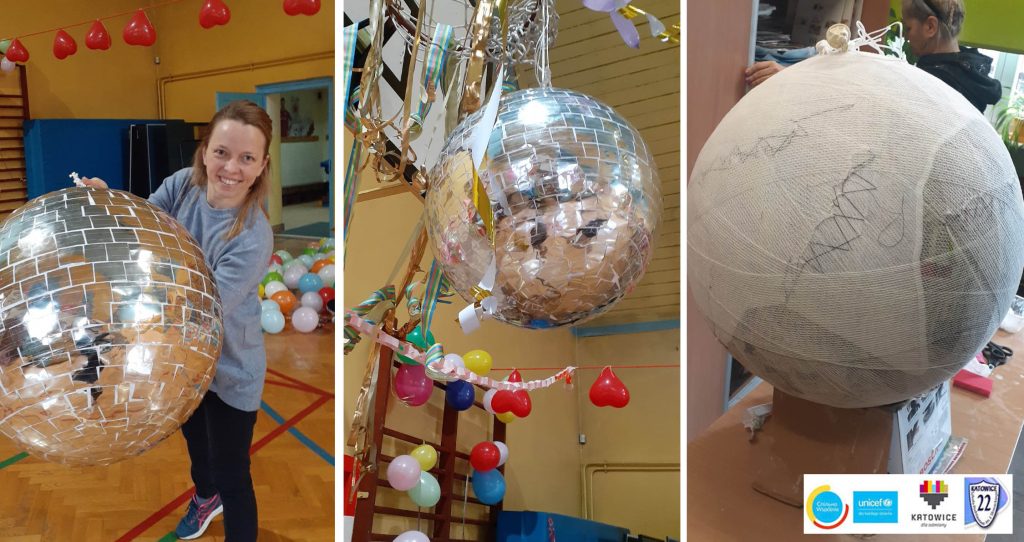 Uczniowie wykonali również wyjątkową kulę dyskotekową w technice papier-mache, której średnica wynosiła około 65 cm. Stała się ona atrakcyjnym elementem dyskoteki, która odbyła się 14 lutego.