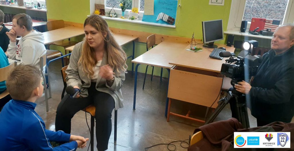 31 marca naszą szkołę odwiedziła Telewizja Polska – TVP Katowice, program Aktualności. Dzieci stały się bohaterami nagrania o pisaniu listów do ukraińskich wojskowych, żołnierzy i medyków.